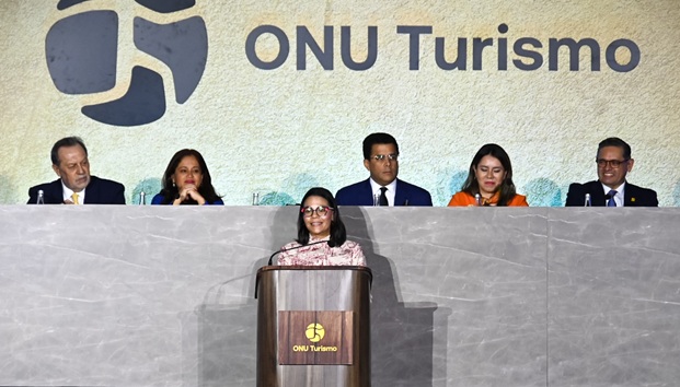 La directora ejecutiva de ONU Turismo, Natalia Bayona y el director Regional para las Américas del organismo, Gustavo Santos, destacaron el liderazgo de David Collado a nivel regional, quien recibió un reconocimiento como el mejor ministro de Las Amé