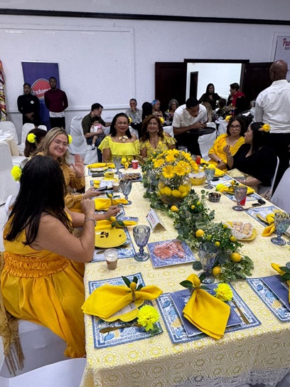 Las anfitrionas de las mesas bailaron el baile de la cinta y Emy Eventos, junto a la cantante Dilcia Santana, amenizaron la actividad, para el deteite de los asistentes a la Tarde de Café Familiar de colores.