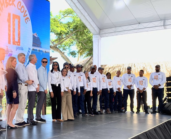 Puerto Plata.- Carnival Corporation celebró los 10 años de operación del puerto Amber Cove, en Maimón Puerto Plata, tiempo en el que han recibido más de 7 millones de visitantes y generando más de mil empleos directos e indirectos de los cuales más del 60 por ciento son personas del distrito municipal de Maimón.