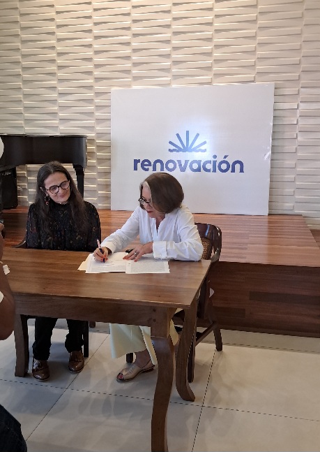 El acuerdo fue rubricado por la presidenta de Renovación Maria Amelia Finke Brugal y la señora Malena Ida Teresa Alsop Riley, Lena, hija de la destacada historiadora y arqueologa.