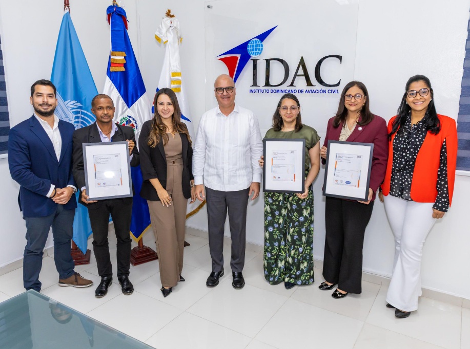 Santo Domingo.– El Instituto Dominicano de Aviación Civil (IDAC) recibió esta tarde la recertificación en las normas ISO 9001 de Gestión de Calidad, ISO 45001 de Seguridad y Salud en el Trabajo y ISO 14001 del Sistema de Gestión Ambiental, reafirmando su compromiso con la excelencia institucional y la mejora continua.