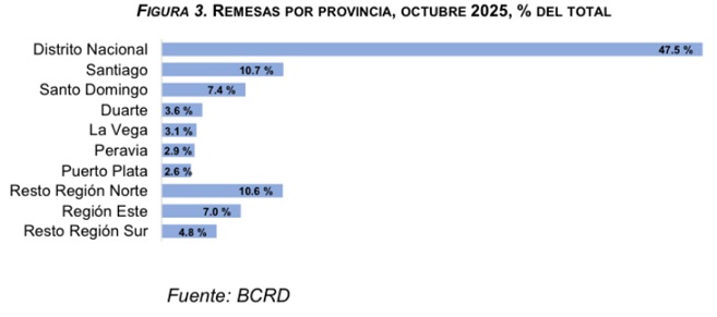 Puerto Plata, recibió el 2.6 por ciento del total de las remesas, alrededor de 257 millones de dólares, lo que equivale a unos 15,759 millones de pesos, tomando como base la tasa promedio ponderada del período, enero, octubre, del presente año, de 61