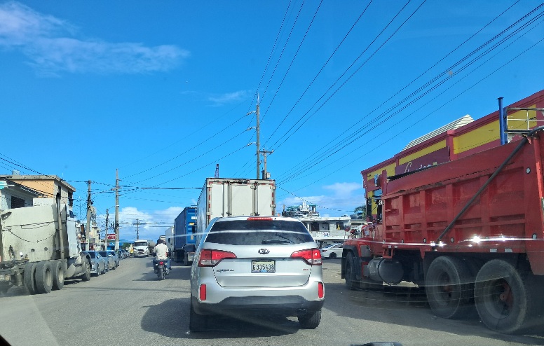 Transitar en las avenidas penetración al muelle y en la Guancho Escaño se torna difícil cuando hay cruceros y más aún cuando estos coinciden con barcos de carga, por la cantidad de camiones que se parquean a ambos lados de la vía.