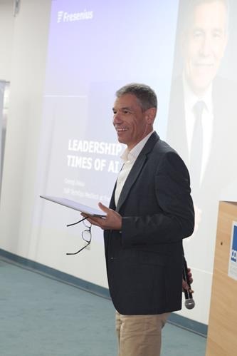 Santiago de los Caballeros .-La Corporación Zona Franca Santiago (CZFS) realizó en Capex la conferencia “Leadership in Times of IA in Santiago”, impartida por Georgi Jekov, vicepresidente senior de Operaciones Tecnológicas de Fresenius Kabi MedTech, empresa global dedicada al desarrollo de tecnologías y dispositivos médicos innovadores.