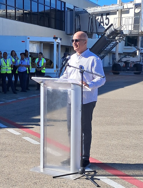 La aeronave aterrizó por primera vez en el Aeropuerto Internacional Gregorio Luperón (POP), donde fue recibida por autoridades provinciales y representantes del sector turístico.